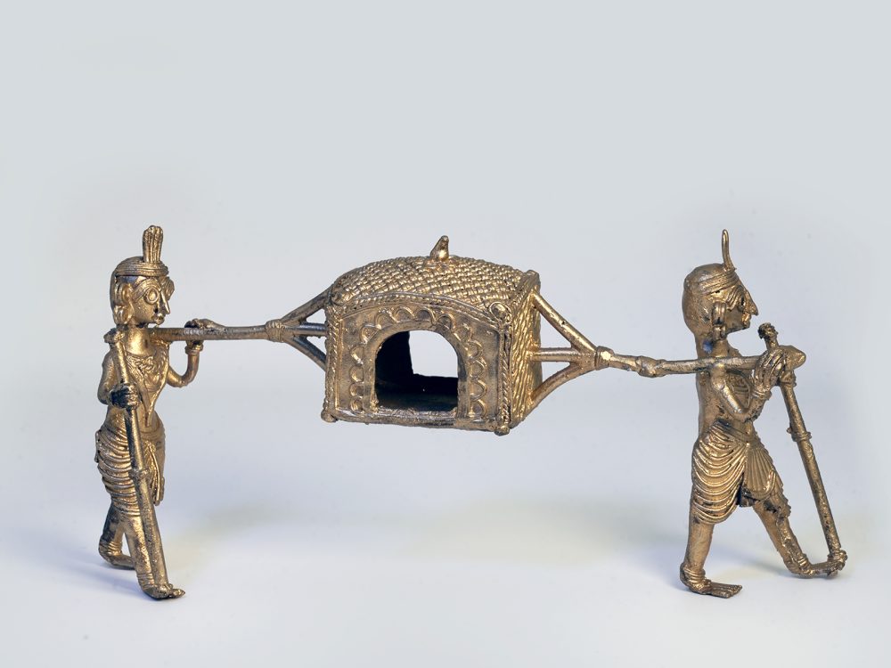 Dokra is a traditional Indian metal craft known for its intricate brass and bronze sculptures. Originating from tribal communities in Eastern India, particularly in states like West Bengal and Odisha, Dokra art involves a unique lost-wax casting technique. Artisans create diverse figures ranging from deities and animals to everyday objects, each piece crafted with meticulous detail and rustic charm. Dokra sculptures are celebrated for their cultural richness and artistic expression, serving as prized decorations and souvenirs worldwide.